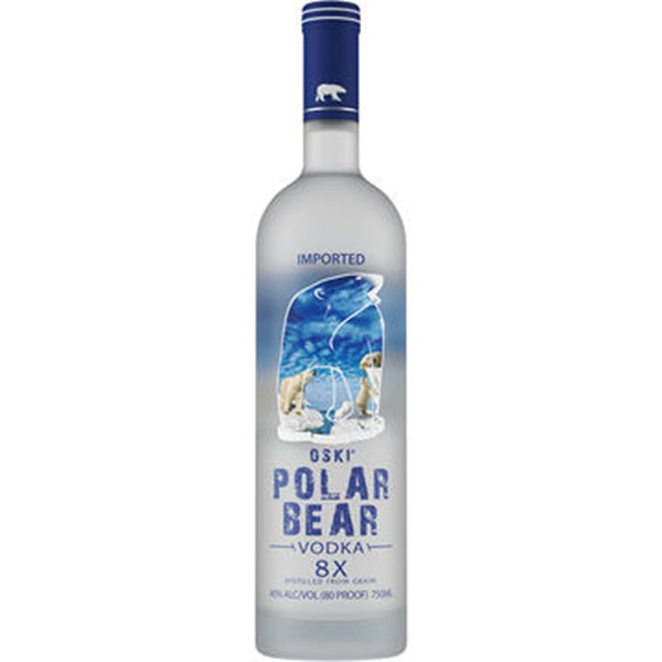 Oski Polar Bear Vodka is a sensational eight times distilled vodka. Made from harvested grain that is minimally processed for fermentation, then blended with water from ecologically clean natural limestone spring with a low PH for perfect balance and taste. From there it is filtered five times for maximum purity. No chemical agents are used in the fermentation process. This leaves us with a nice, balanced mouth feel and pleasing flavor perfect for your cocktails. Polar Bear Vodka supports the Save the Polar Bear Fund through the World Wild Life Fund.